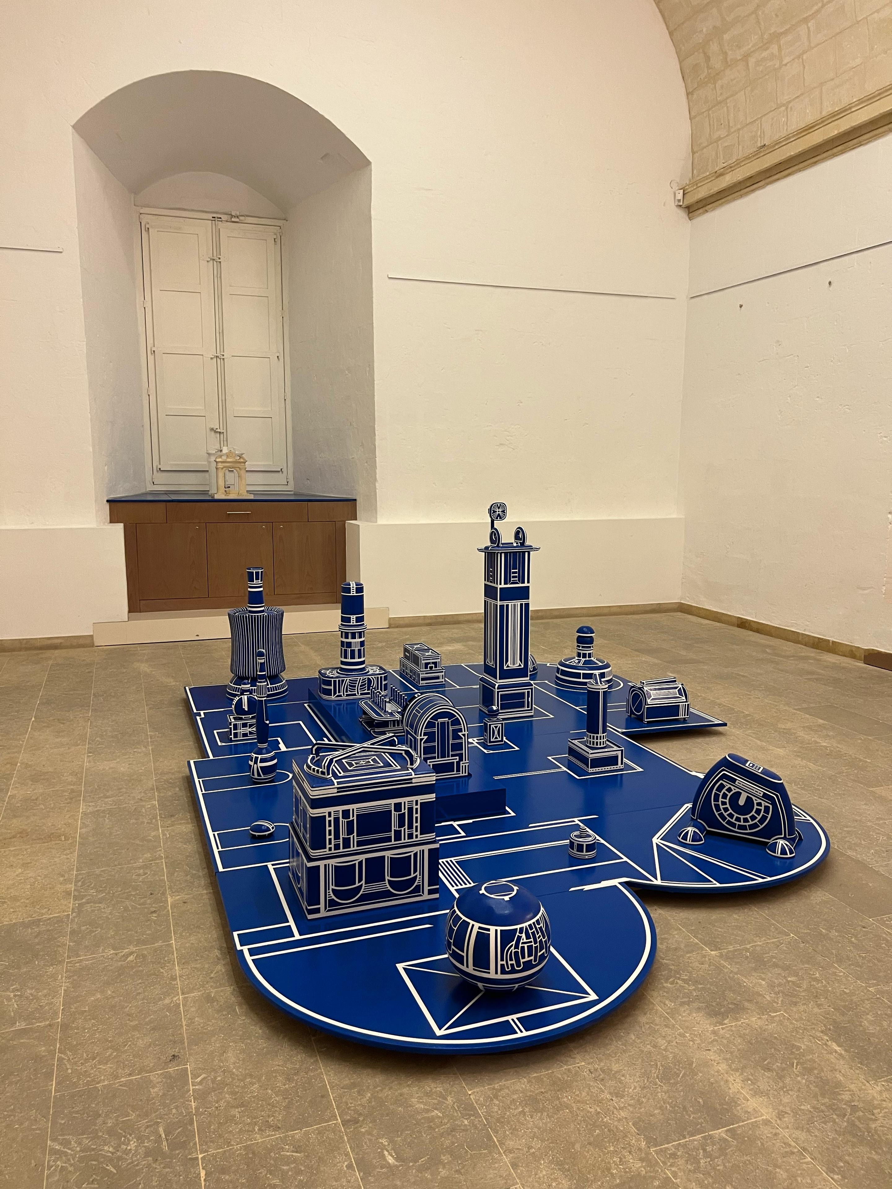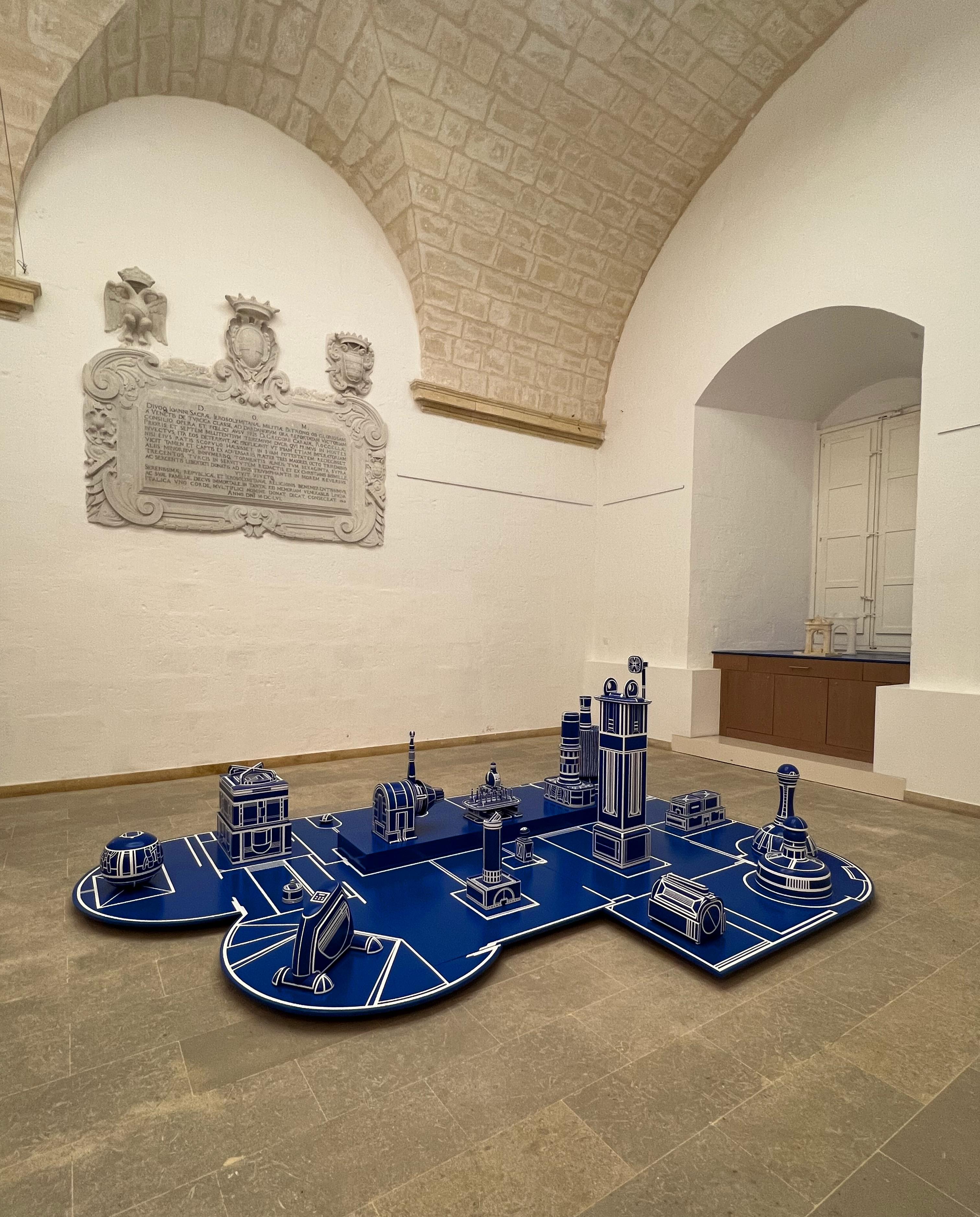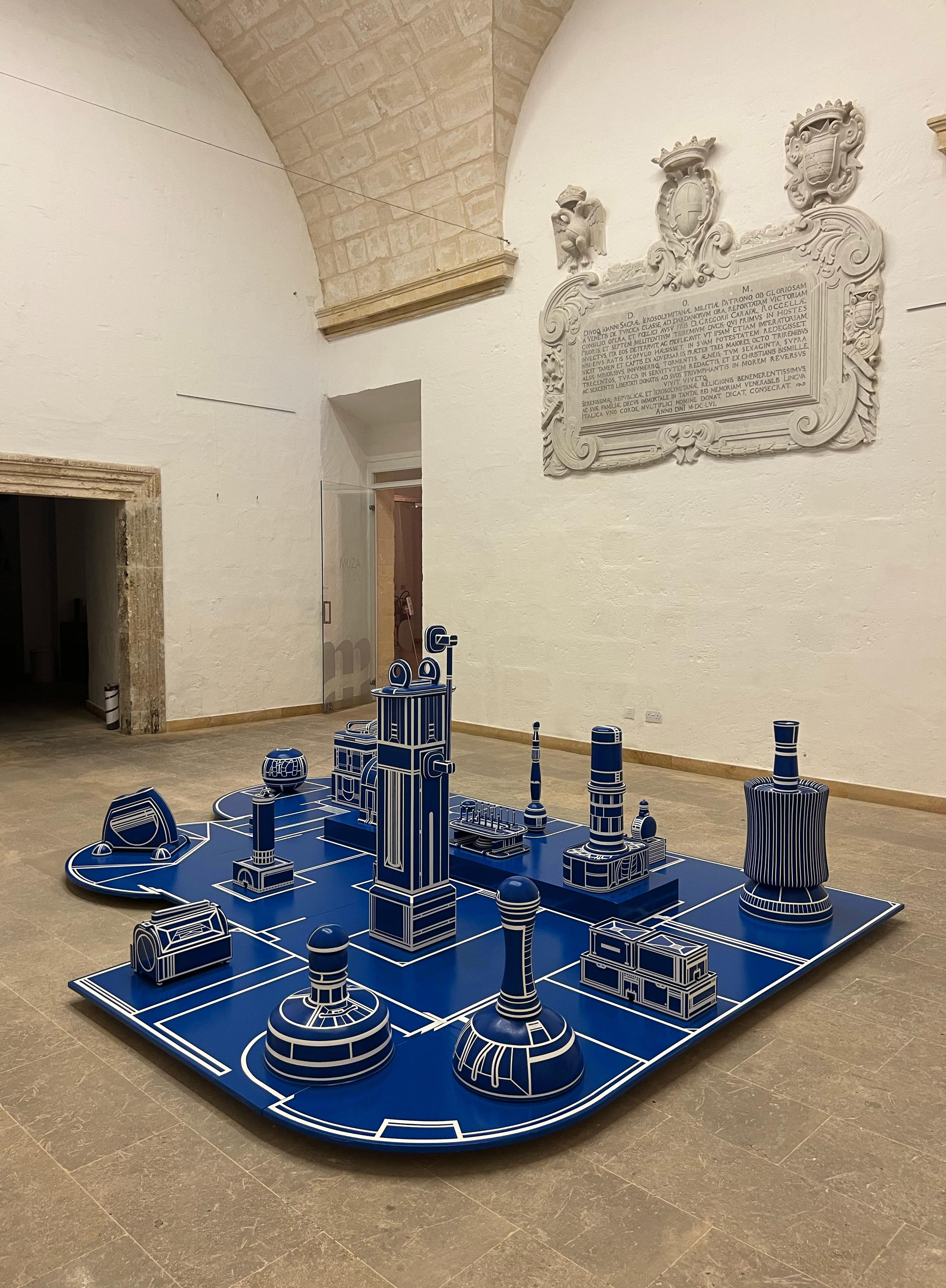 The Motherboard installation is part of the 3D Blueprint Network and classifies as the 2nd test station in the series. The "3D Blueprint Network" is a sculpture series created by recontextualizing and reinventing pre-existing structures and found objects through the application of mechanical drawings of fictitious machines. Every installation becomes a station within the expanding network of instruments, each piece connected by a collective purpose. As a series, these sculptures allude to functionality and a unified objective. When completed, they stand as an emboldened expression for a better future for our planet. In concept, the designed function of these imaginary machines are to help heal our world from the self-inflicted effects of climate change.