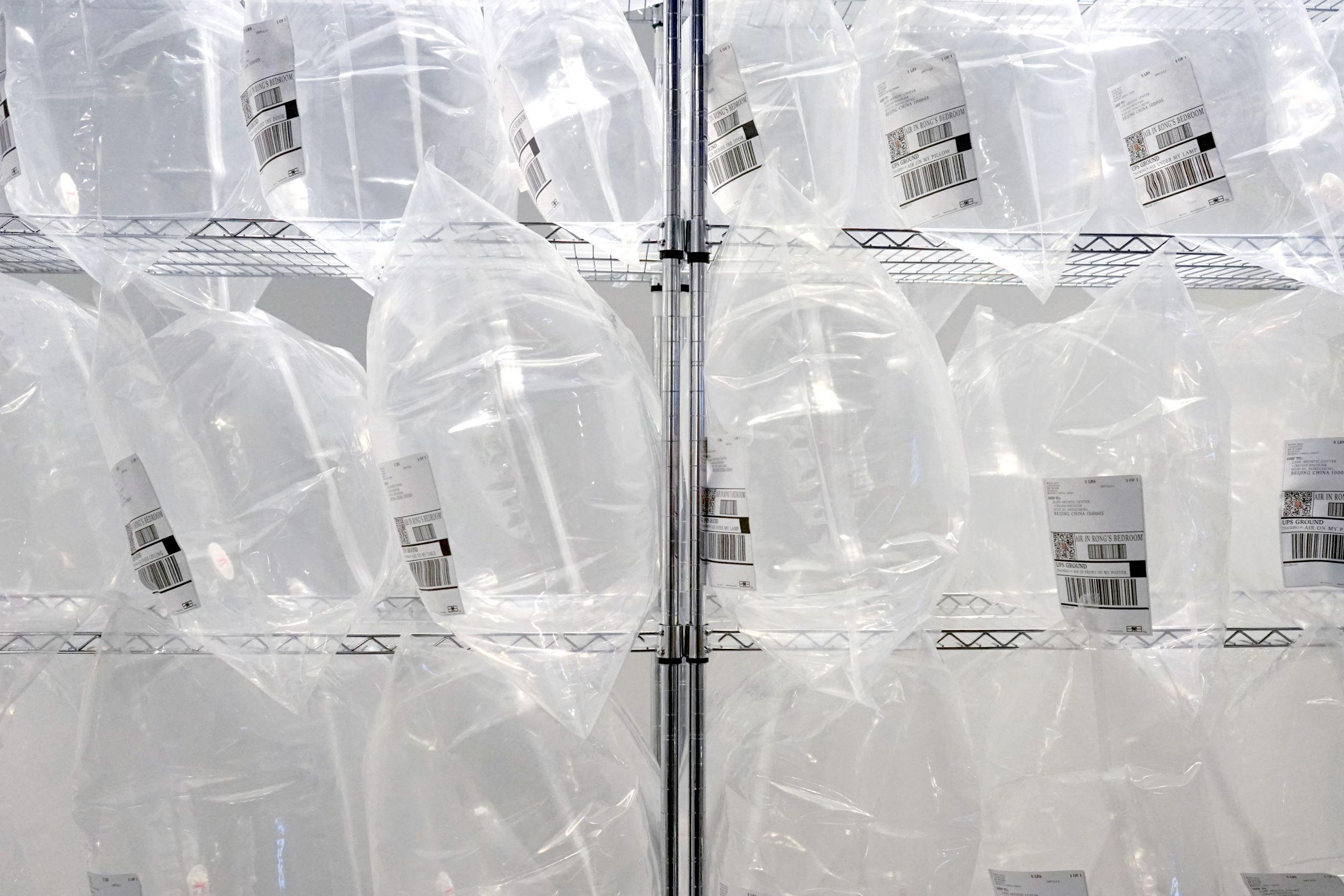 This is the process of collecting and transporting bedroom air and some details of the label. The vacuum storage bag was originally used to extract the air from the bag during storage, and I used it to store air. And I specially designed a courier list for this work. The shipping address on it marked the source of each package of air, with "the air on the table in Rong’s bedroom", "air under the pillow in Rong’s bedroom", "air under the ceiling of Rong’s bedroom", "air in the quilt of Rong’s bedroom", "space behind Rong’s bedroom door" and so on.