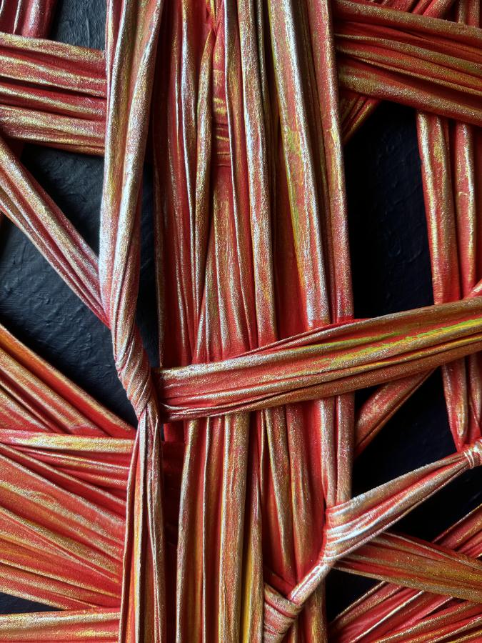 The deep, intertwined strands of fabric represent the hidden fears and desires rooted in our subconscious.