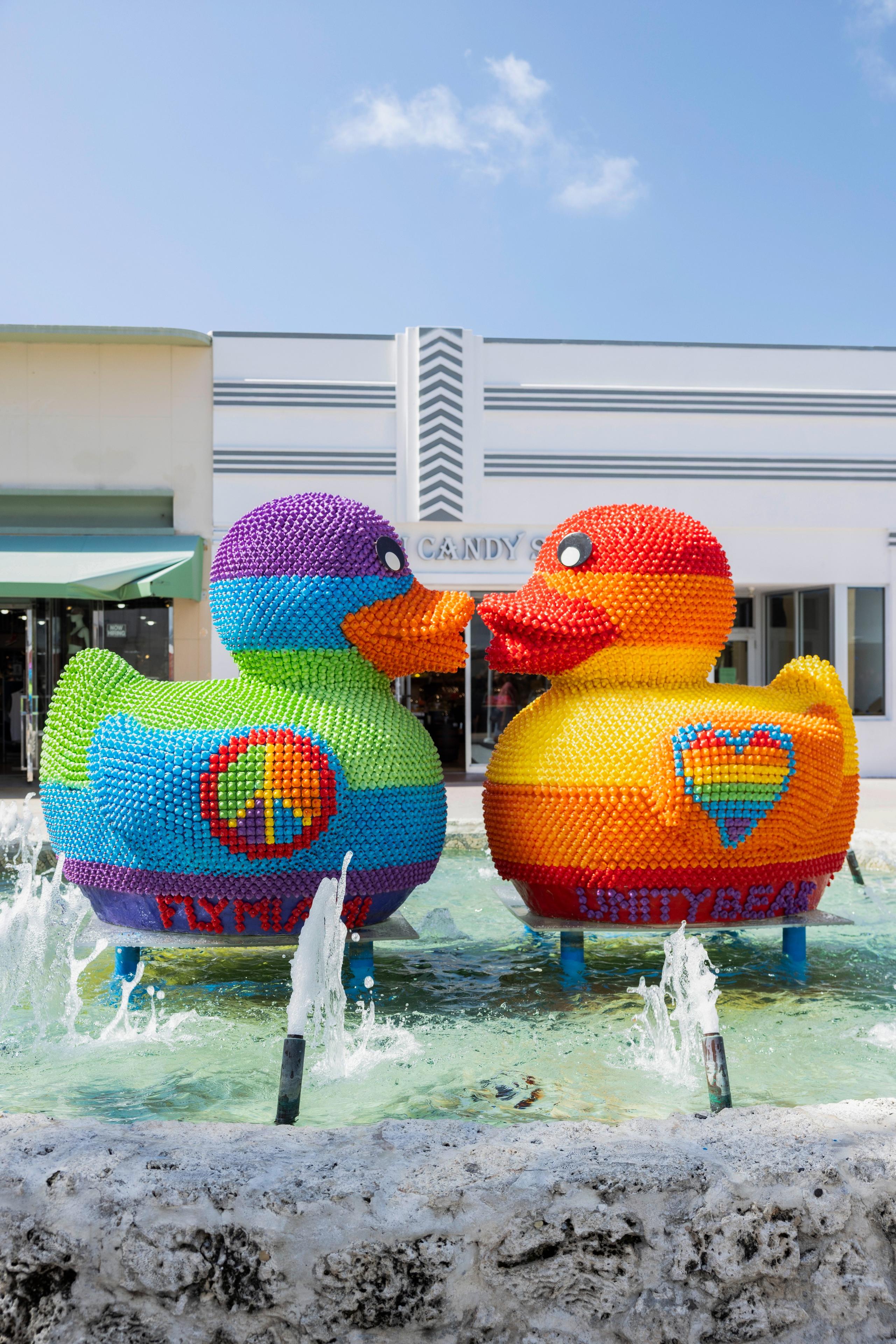 Two giant ducks kissing, each created with over 7,000 colorful mini rubber ducks. Their names are Hope, who carries a heart on her wing, and Resilience, who bears a peace sign. A joyful, monumental celebration of love, identity, and unity. UnityBeak shows how, when we work together, we create something bigger and unbreakable. It reclaims a childlike icon as a powerful force for connection.