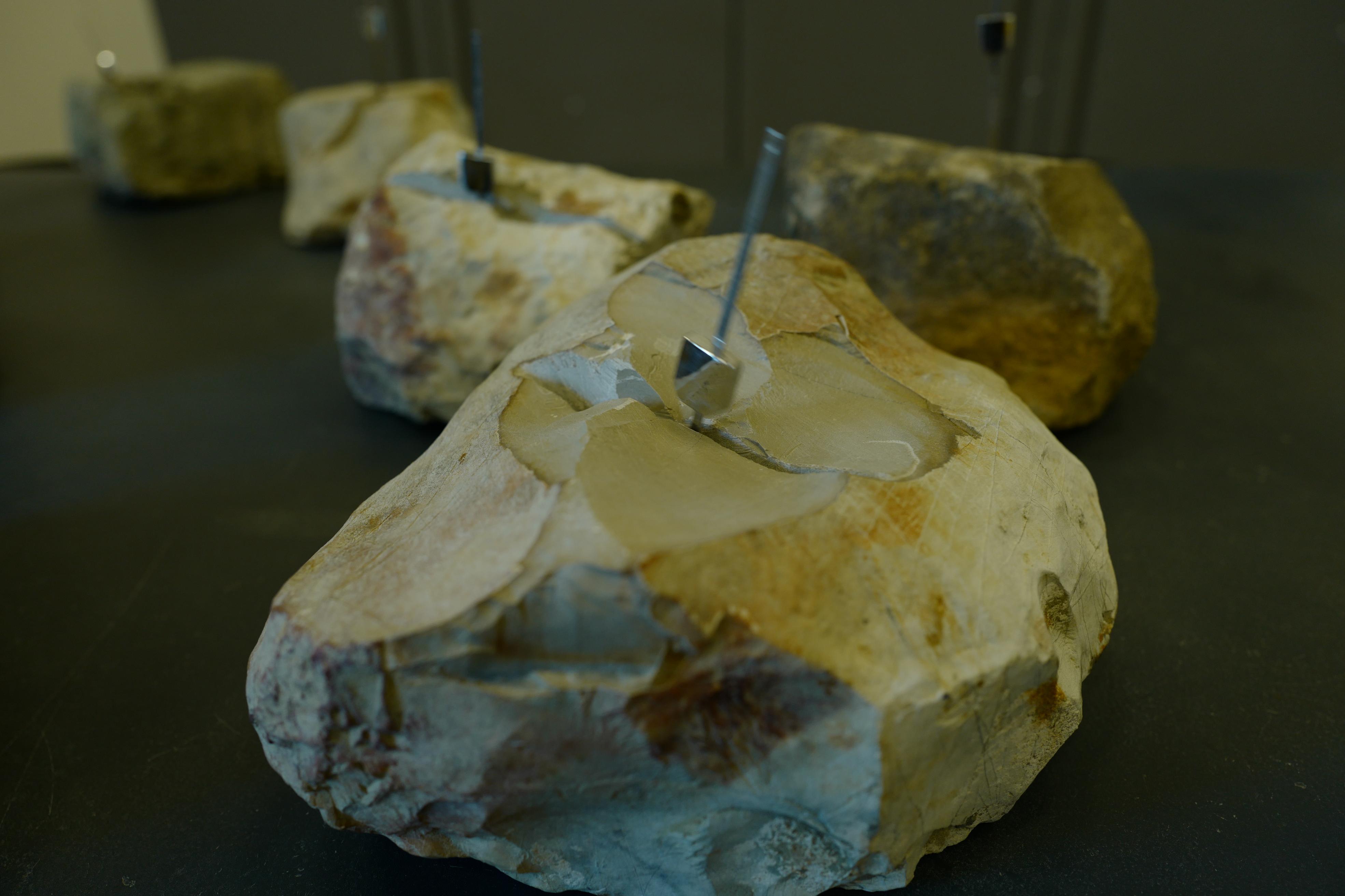 This installation consists of stone blocks, each housing a metronome with a distinct rhythm. When all the metronomes are fully wound, they begin to "perform" simultaneously, each in its own tempo, creating a rhythmic composition that lasts approximately six minutes.