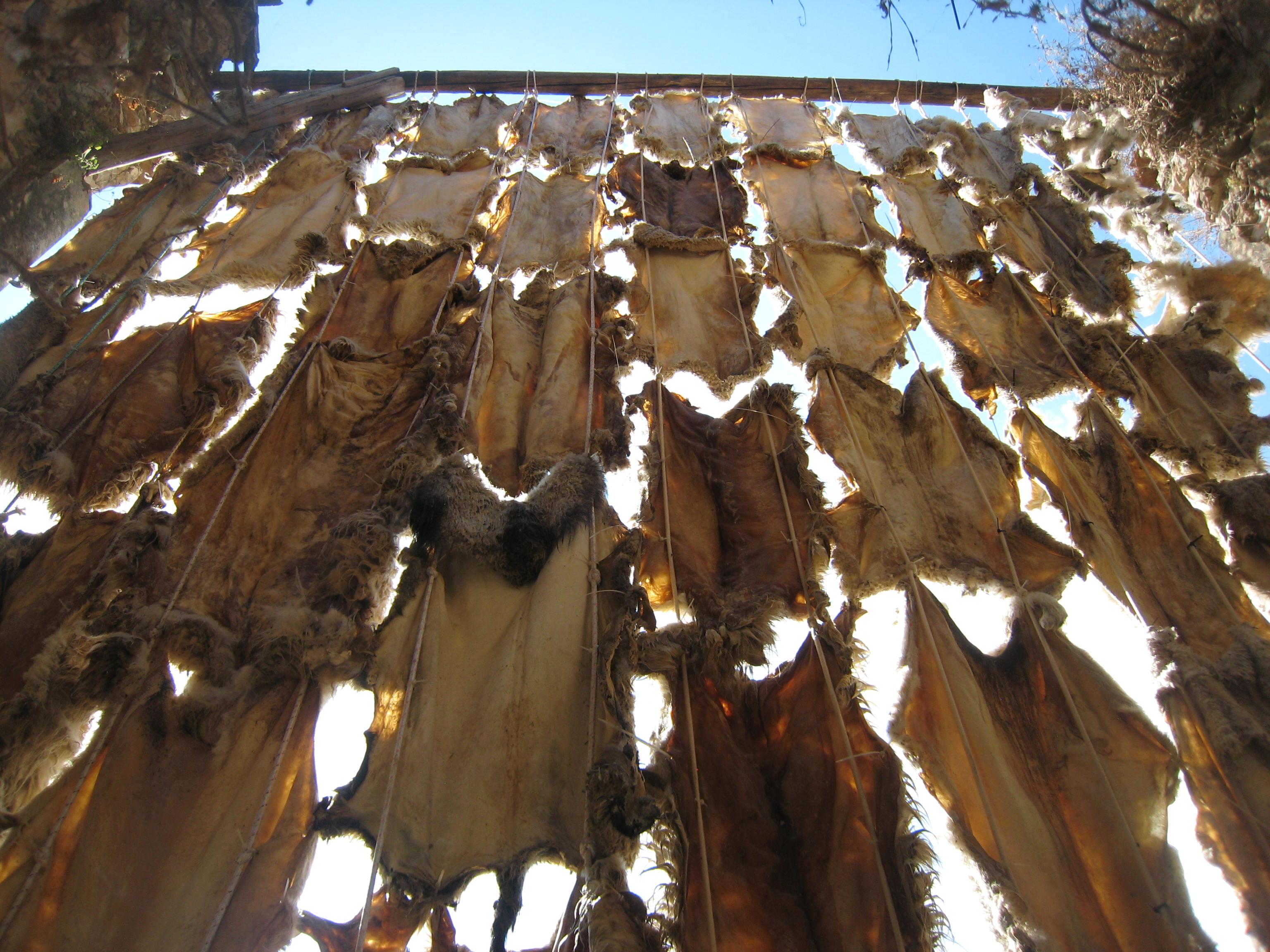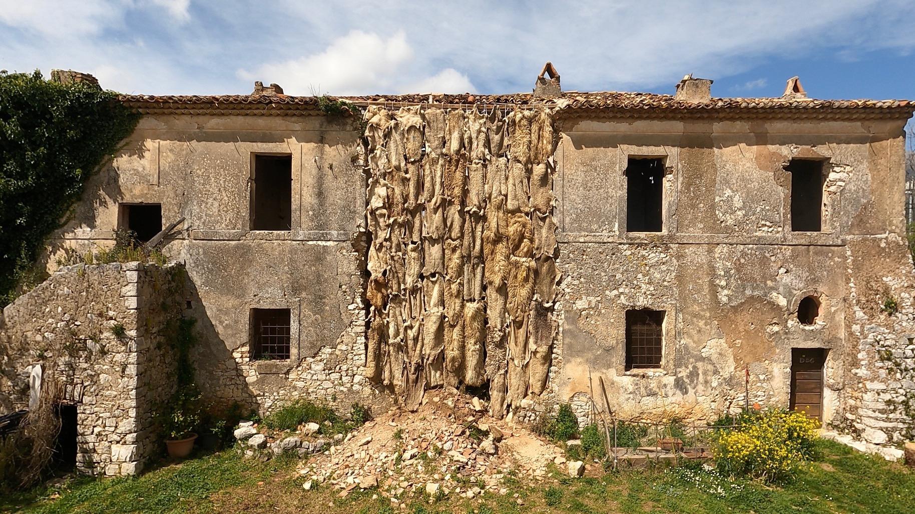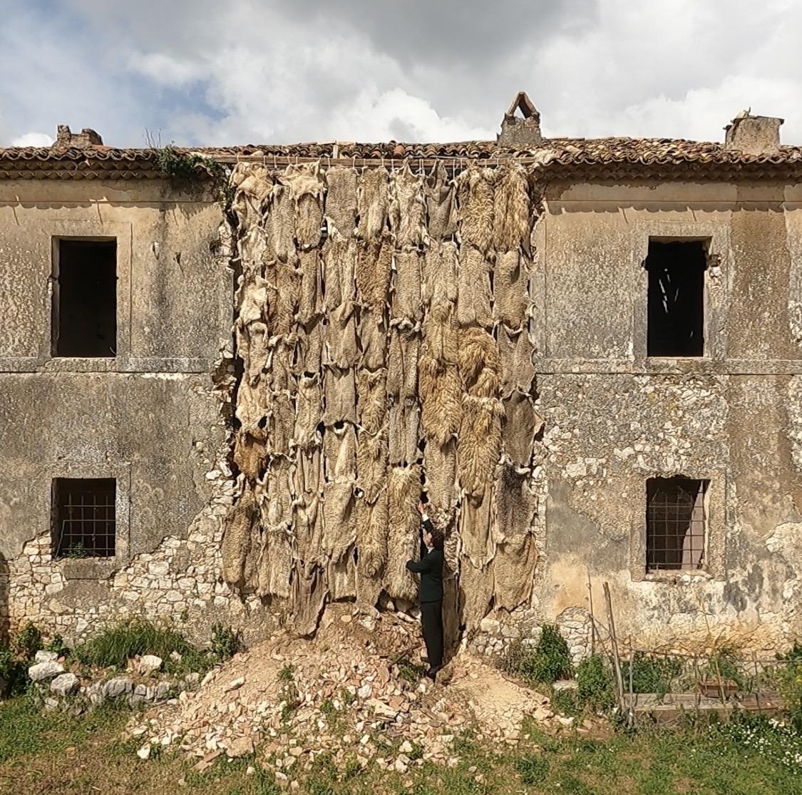 Site specific installation made out of 62 sheep pelts.