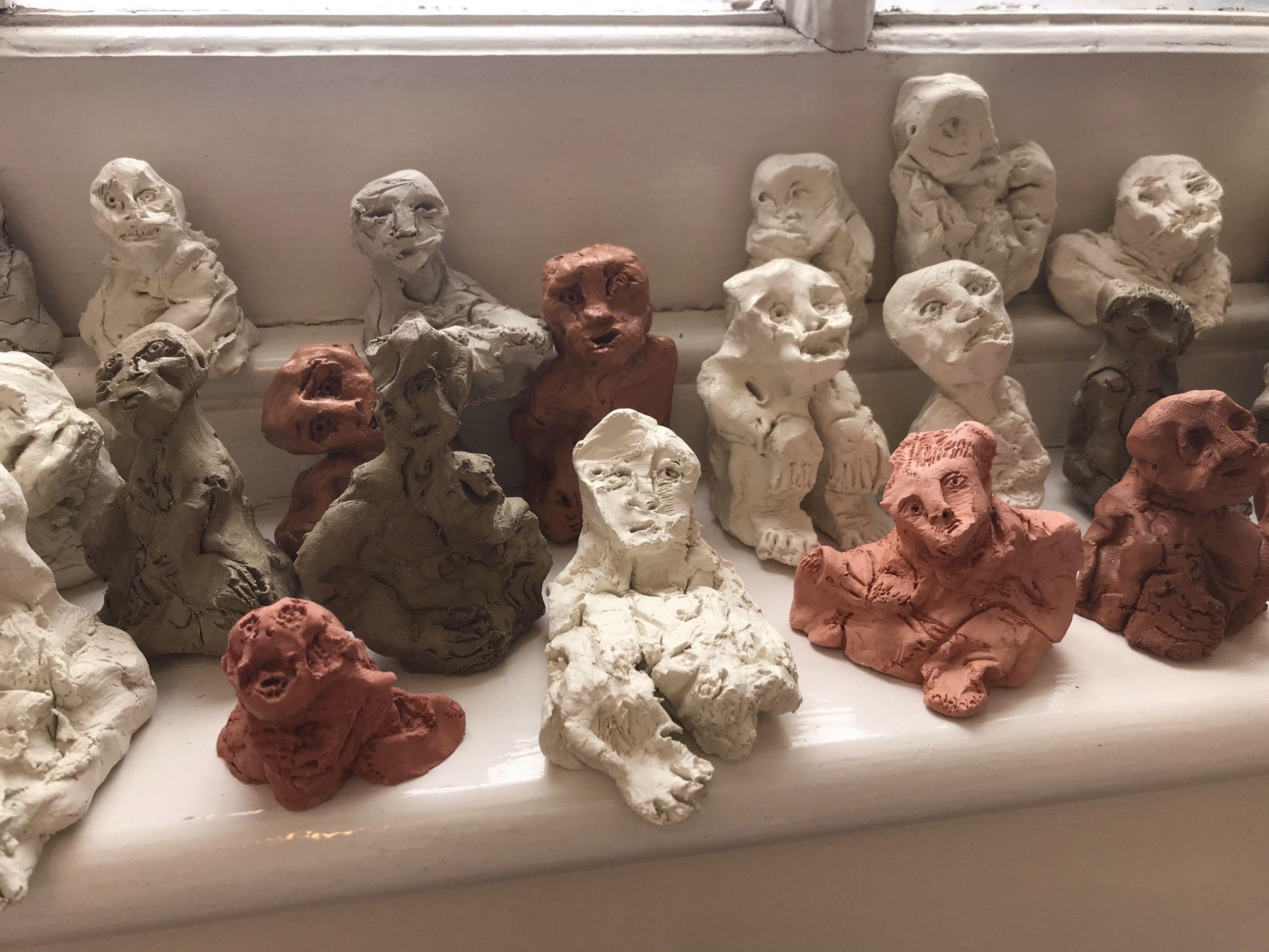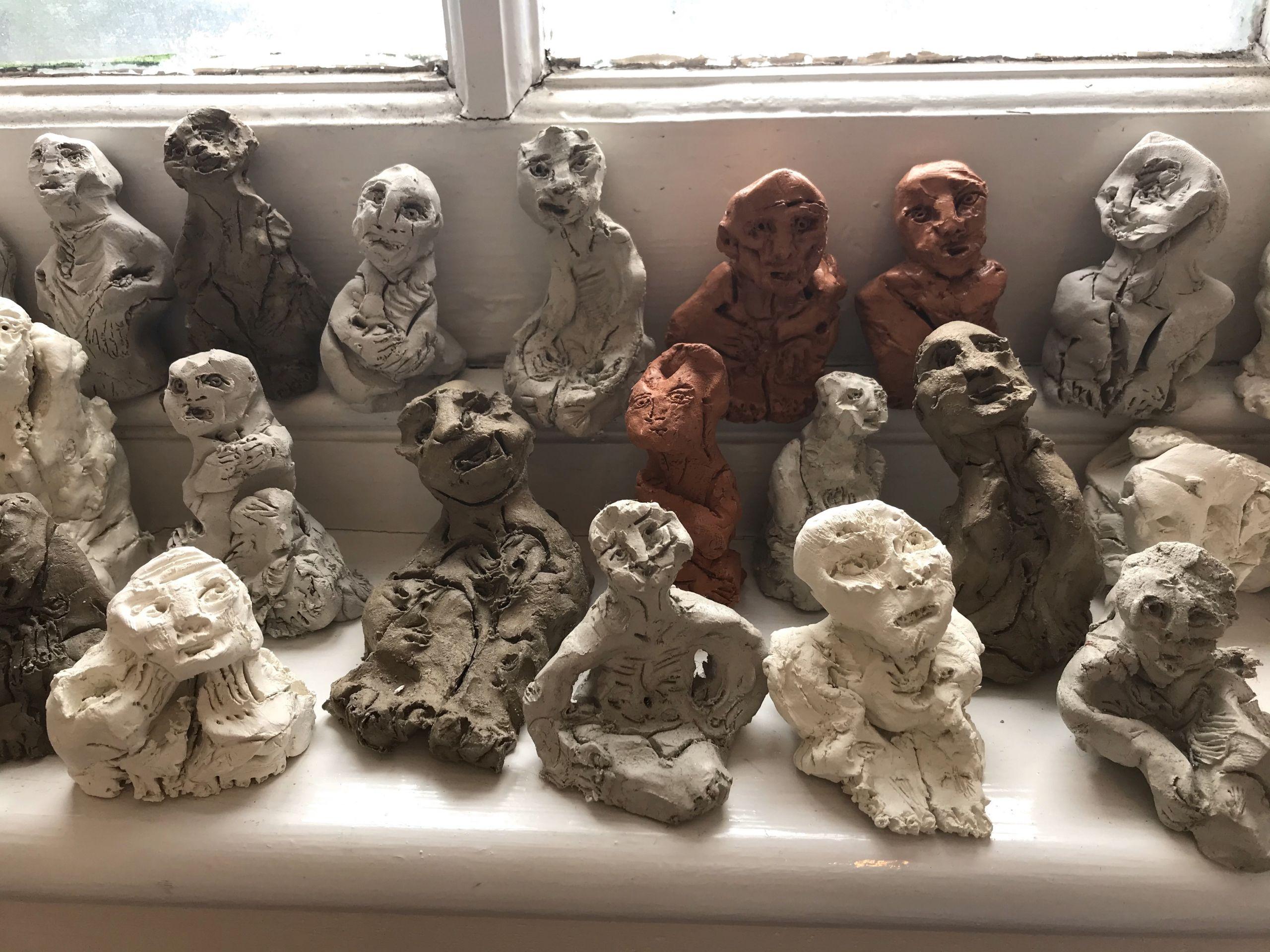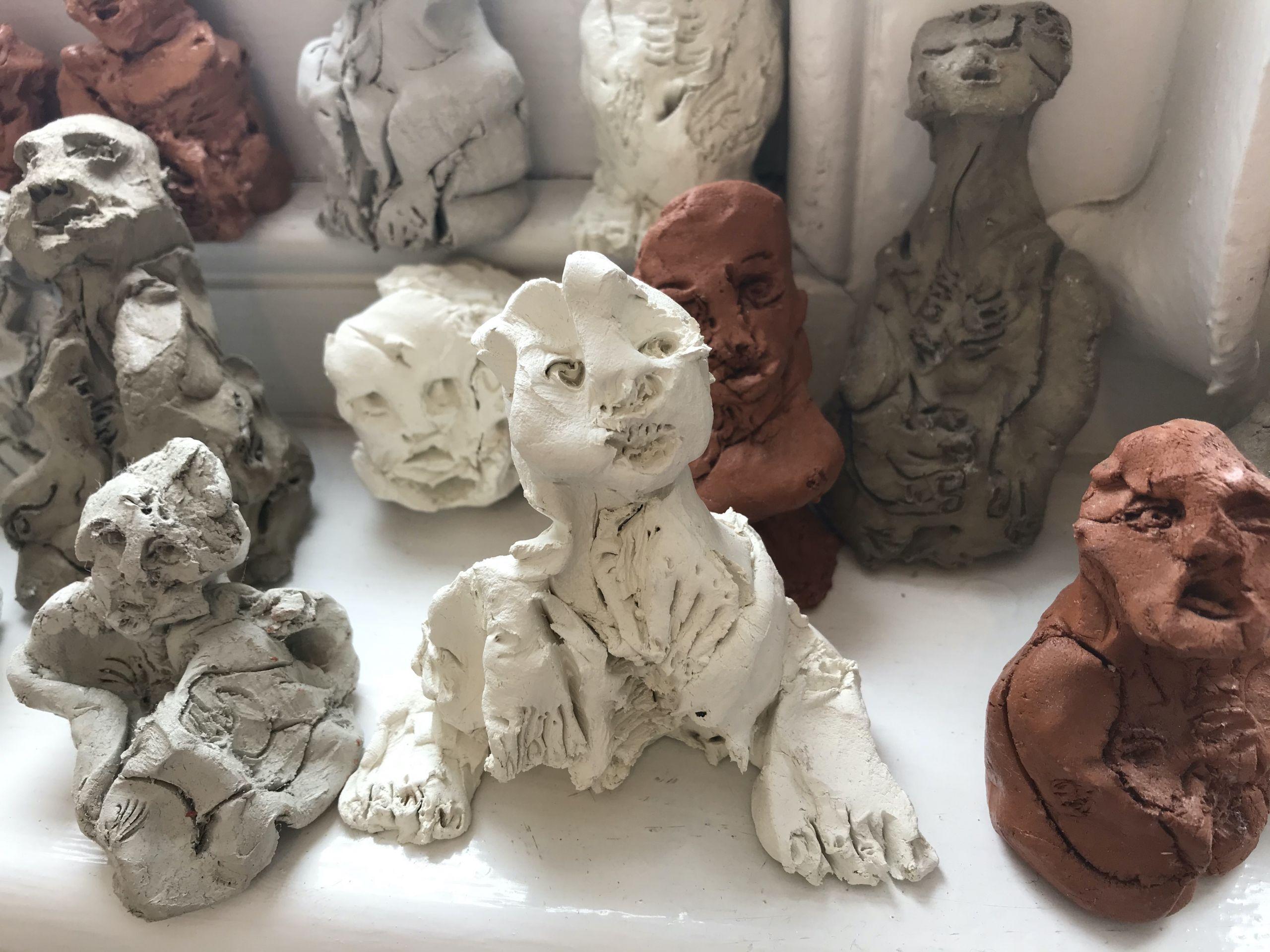 Faces pulled into consciousness remain frozen in their transition from formlessness to form. Freeing fingers and toes, pricking open ears and shaping crude spines, they witness the violence of their own making.