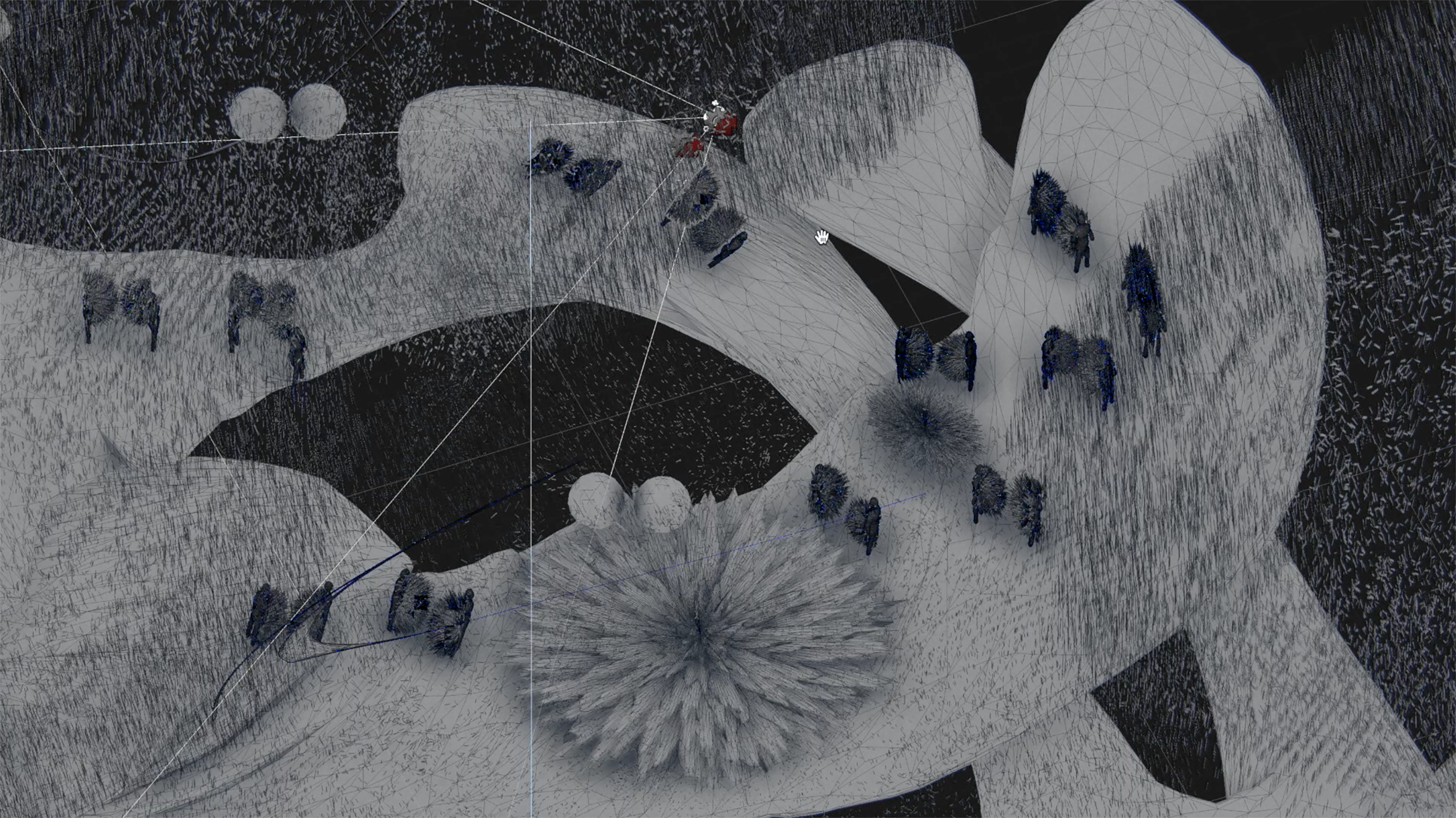Our movements are largely influenced by the space within sight rather than the space behind us. How to shape and experience these unknown spaces by people’s movement and behavior? Can we shape these spaces by breaking and establishing potential connections between people?